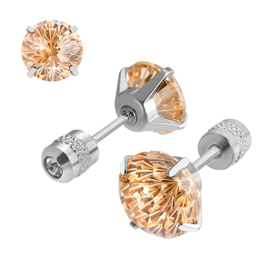 Firework-cut Zirconia Stud Earrings G23 Titanium AAAA + Cubic Zircon Suitable for Sensitive Ears Champagn