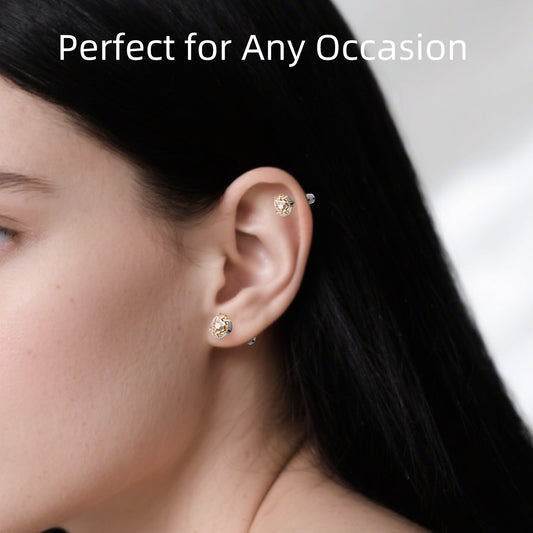 Firework-cut Zirconia Stud Earrings G23 Titanium AAAA + Cubic Zircon Suitable for Sensitive Ears Colorful