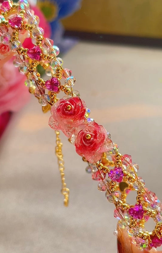 Luxurious Red Rhinestone Seed Bead Bracelet Handmade