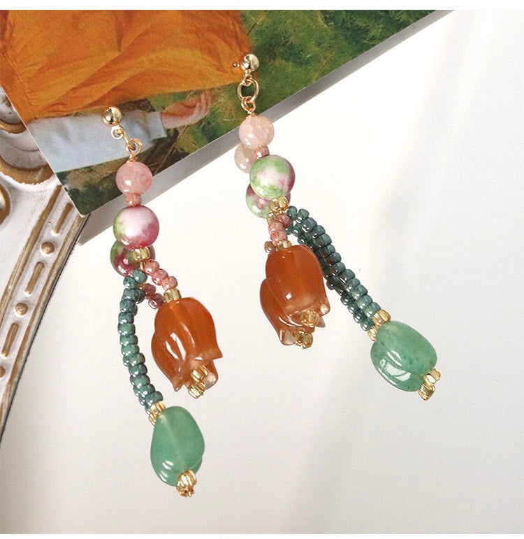 Estos pendientes cuentan con delicadas cuentas entrelazadas de forma intrincada, lo que crea un atractivo visual sorprendente que complementa sin esfuerzo cualquier atuendo. El engarce de plata esterlina agrega un toque de belleza y durabilidad atemporales, lo que los hace perfectos tanto para salidas informales como para ocasiones especiales.