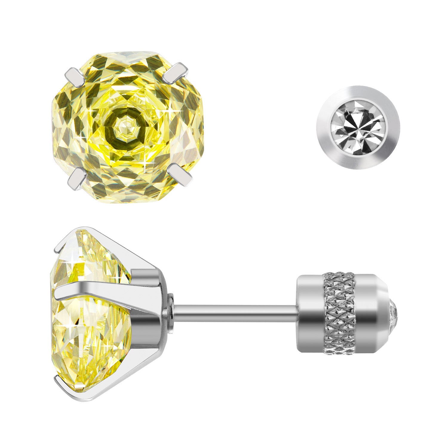 Rose-cut Zirconia Stud Earrings G23 Titanium AAAA + Cubic Zircon Suitable for sensitive ears Light Yellow