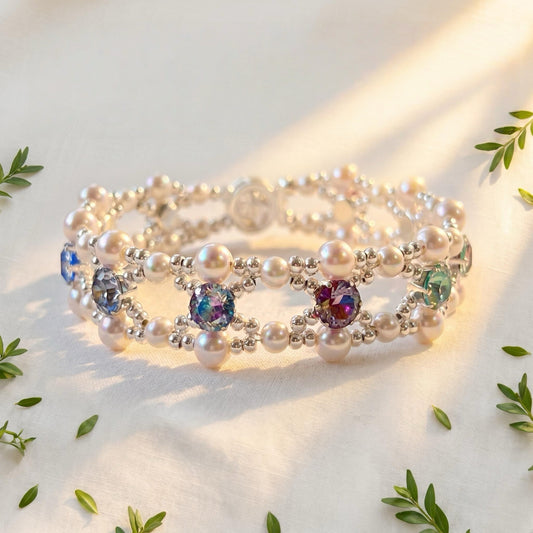 Luxurious Red Rhinestone Seed Bead Bracelet Handmade