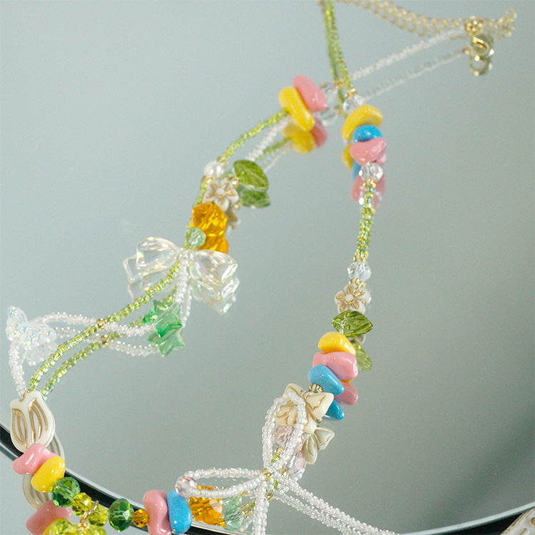 Diese Halskette besteht aus einer bezaubernden Reihe von Kristallperlen, die von Hand fein aufgefädelt wurden, um einen faszinierenden Wasserfall schimmernder Eleganz zu erzeugen. Jede Perle wurde sorgfältig aufgrund ihrer Klarheit und Brillanz ausgewählt, reflektiert das Licht bei jeder Bewegung und zieht mit ihrem strahlenden Charme den Blick auf sich.