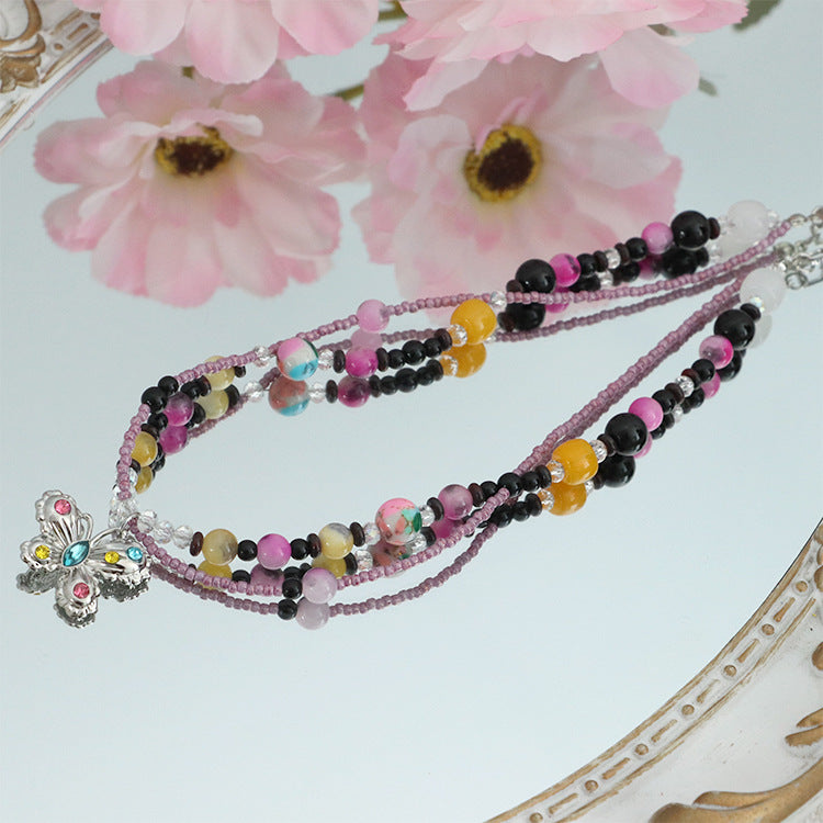 Jede Halskette ist ein Meisterwerk handwerklicher Kunstfertigkeit und besteht aus hochwertigen Reisperlen und Natursteinen, die von erfahrenen Händen sorgfältig miteinander verbunden werden. Die Reisperlen, die für ihre glatte Textur und ihr glänzendes Finish bekannt sind, verflechten sich nahtlos mit den Natursteinen und erzeugen eine harmonische Verschmelzung von Texturen und Farben.