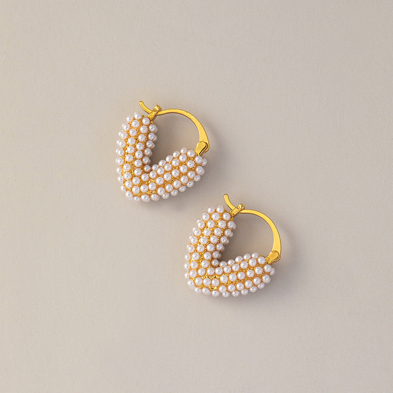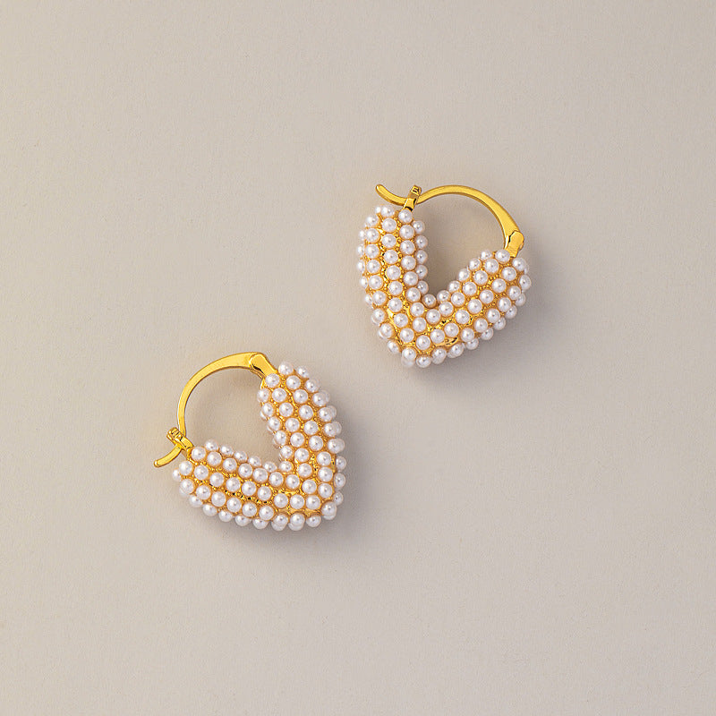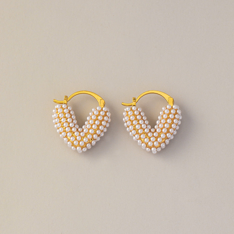 Herzförmige Perlenohrringe mit Echtgold-Galvanisierung