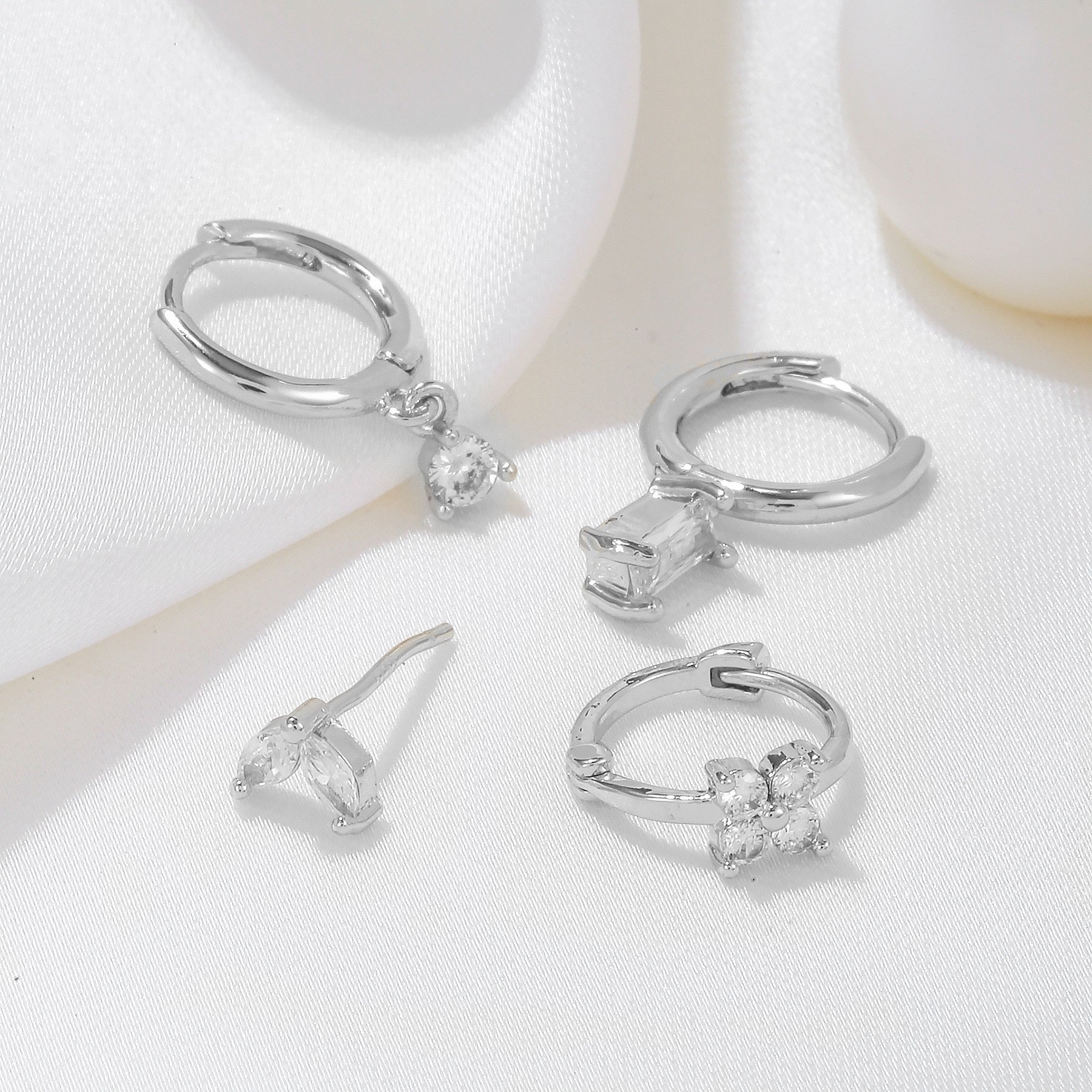 Wir präsentieren unser Knorpelpiercing-Set mit Zirkon-Ohrringen – eine umwerfende Kollektion aus vier eleganten Ohrringen, die Ihren Stil aufwerten. Jedes Stück in diesem Set besteht aus hochwertigen Zirkonsteinen, die brillant funkeln und jedem Look einen Hauch von Glamour verleihen. Diese vielseitigen Ohrringe sind sowohl für Knorpel- als auch für Ohrläppchenpiercings geeignet und können zusammen oder einzeln zu jedem Anlass getragen werden. Sie bestehen aus hypoallergenen Materialien, sind perfekt für empfindliche Haut und bieten den ganzen Tag über ein angenehmes Tragegefühl. Erweitern Sie Ihre Schmuckkollektion mit diesen exquisiten Zirkon-Ohrringen, die perfekt dazu geeignet sind, jedem Outfit Raffinesse und Glanz zu verleihen.