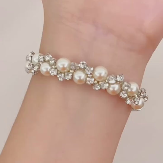 Eleve su colección de joyas con la pulsera de alta calidad hecha a mano de cristal checo y perla, un símbolo de elegancia y refinamiento.
