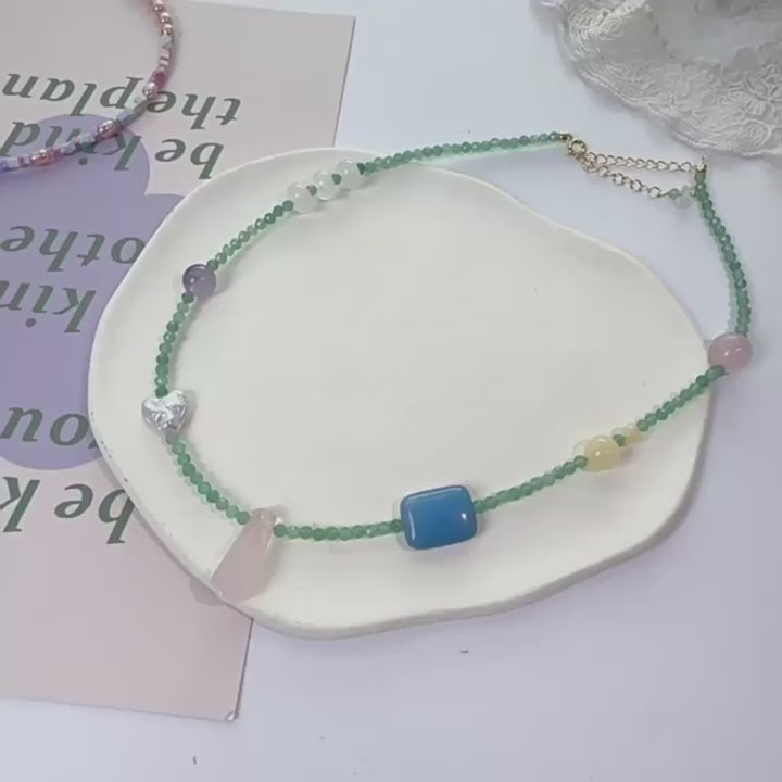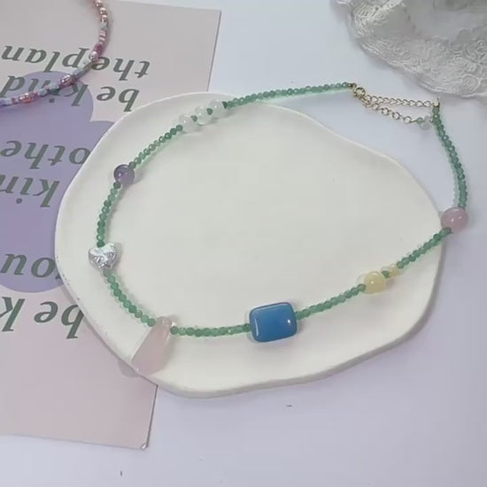 Realza tu estilo con este exquisito conjunto de collar y pulsera de oro de 18 quilates que presenta una combinación armoniosa de ágata blanca, cuarzo, jade amarillo, perlas naturales y piedras preciosas verdes. Cada pieza de este conjunto está elaborada meticulosamente para exhibir la belleza natural de estas piedras preciosas, acentuada por el brillo lujoso del oro de 18 quilates.