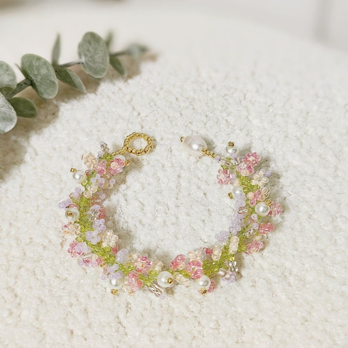 Con su diseño de múltiples capas, esta pulsera agrega un toque de sofisticación a cualquier conjunto, ya sea que se use sola o combinada con otros accesorios. Las cuentas de arroz están delicadamente ensartadas entre sí, creando una pieza liviana y cómoda que complementa tu estilo sin esfuerzo.
