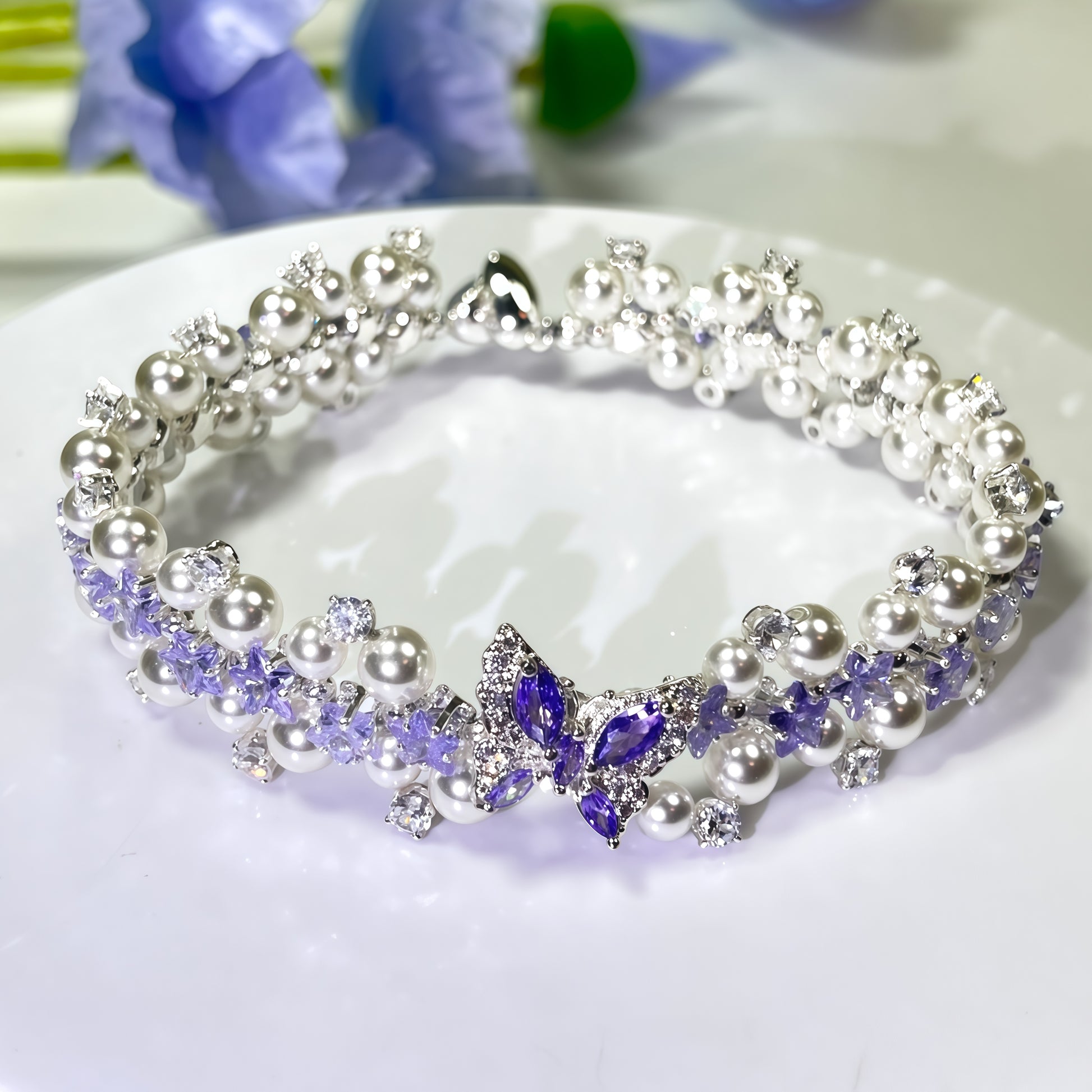 - Piedras preciosas aguamarina : el azul relajante de la aguamarina añade un toque de tranquilidad, complementando perfectamente las perlas.