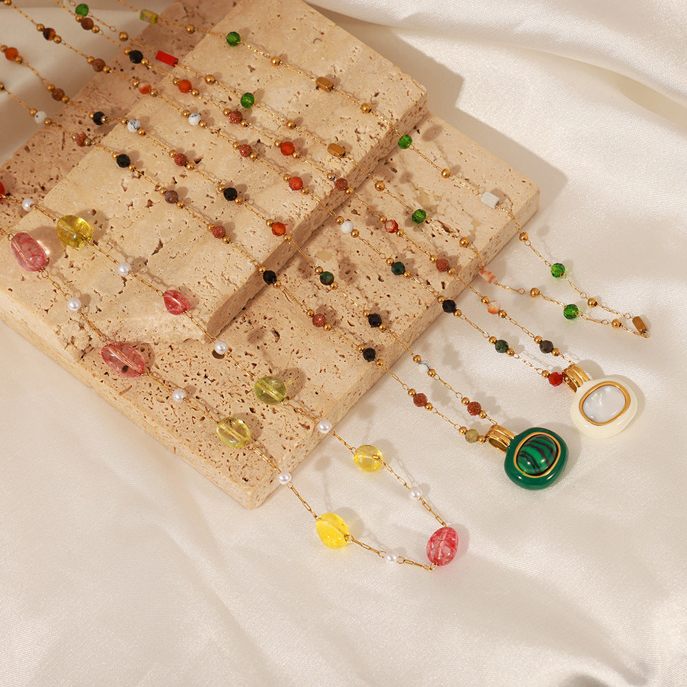Collar de clavícula de piedra natural para mujer: collar de malaquita esmaltada de acero y titanio bañado en oro de 18 quilates