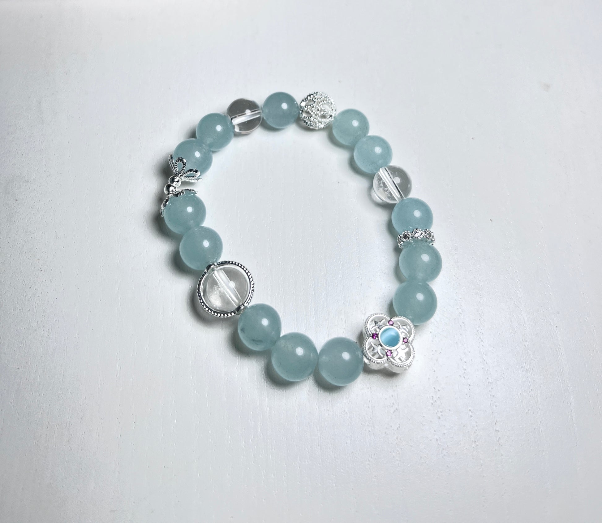 The blue natural crystals add a calming and enchanting touch, while the S925 silver beads provide a sophisticated accent, making this bracelet a versatile accessory for any outfit. Perfect for both casual wear and special occasions, this bracelet will enhance your style with its unique and elegant design.
