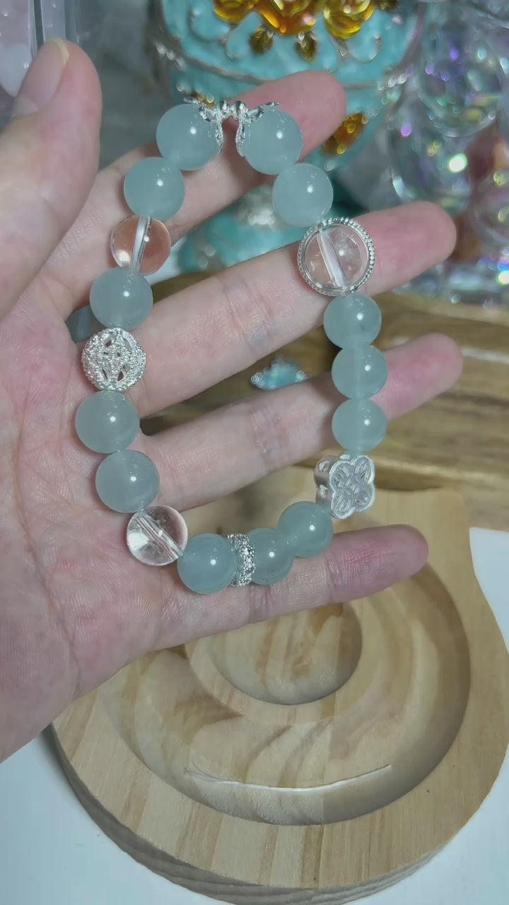 Elevate your jewelry collection with this Handmade Blue Natural Crystal Bracelet featuring S925 Silver Beads. Each piece is thoughtfully handcrafted, combining the serene beauty of blue natural crystals with the timeless elegance of S925 silver beads.